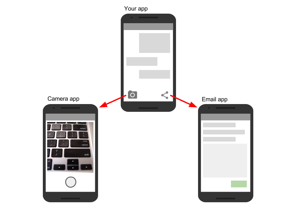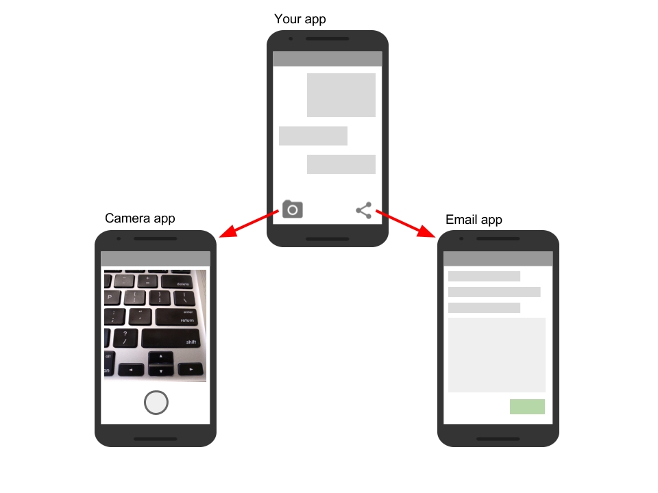 Although the activities in your app work with each other to form a cohesive user experience, each activity is independent of the others. This enables your app to start an activity in another app, and it enables other apps to start activities in your app (if your app allows this). For example, a messaging app could start an activity in a camera app to take a picture, then start an activity in an email app to let the user share the picture in email.