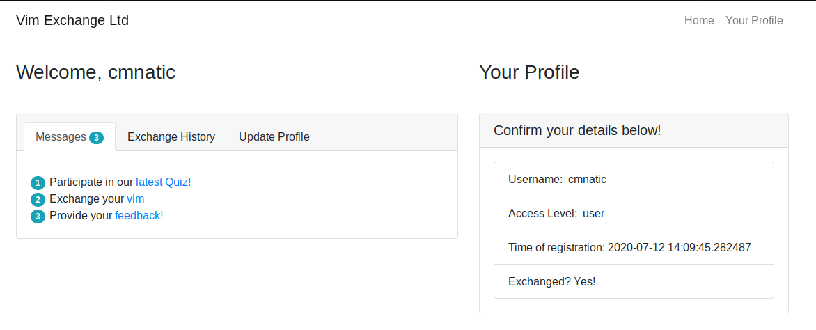 2. Then, left-click on the URL in "Exhange your vim" found in the screenshot below.