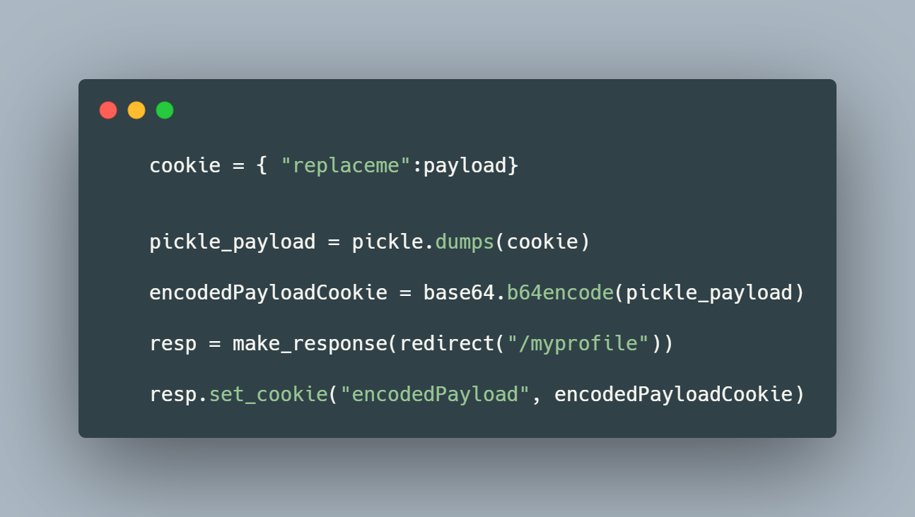 This vulnerability exploits Python Pickle, which I have attached as reading material at the end of the room. We essentially have free reign to execute whatever we like such as a reverse shell.