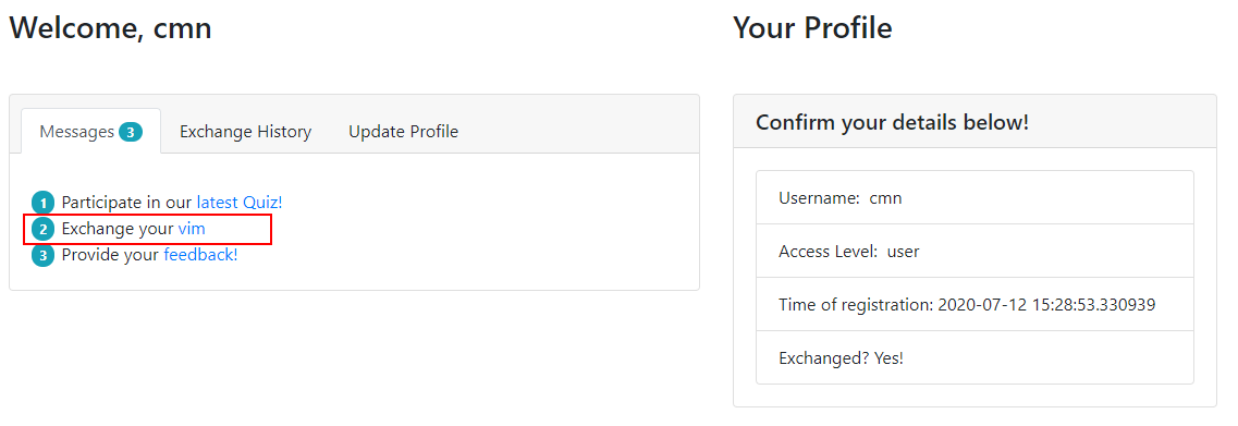 1. First, change the value of the userType cookie from "admin" to "user" and return to http://10.10.157.61/myprofile