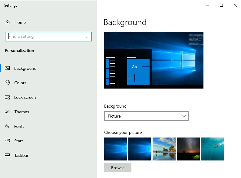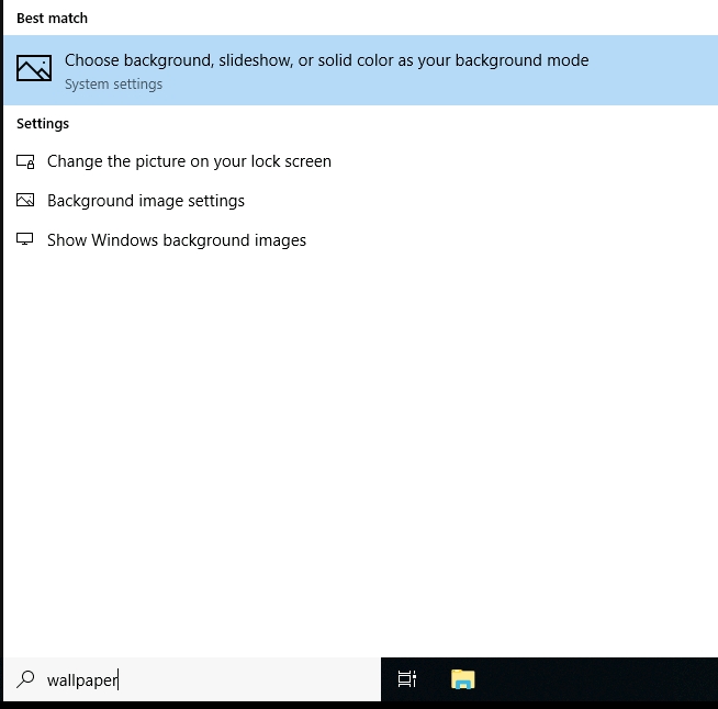 If we click on the Best match, a window to the Settings menu appears to make changes to the wallpaper.