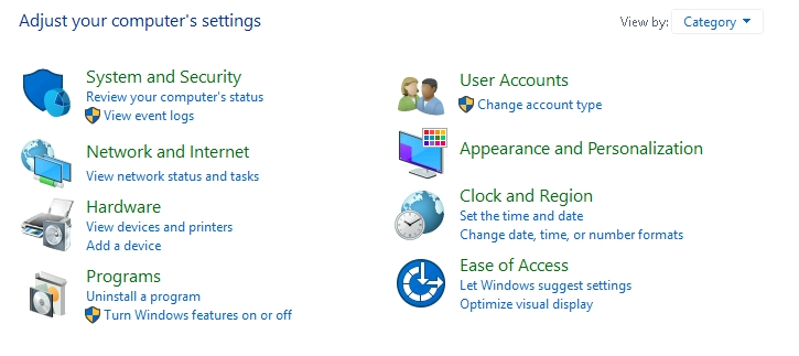 Control Panel is the menu where you will access more complex settings and perform more complex actions. In some cases, you can start in Settings and end up in the Control Panel.