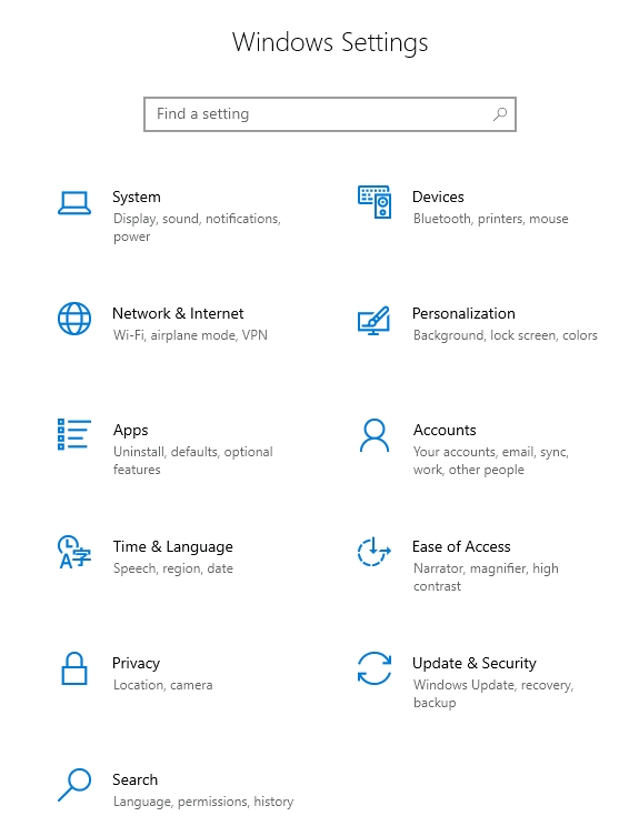 Note: The icons for Settings might be different in the version of Windows on your personal device.
